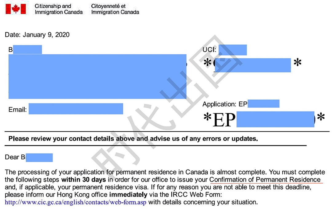 Ø 2020.01 收到移民贴签信